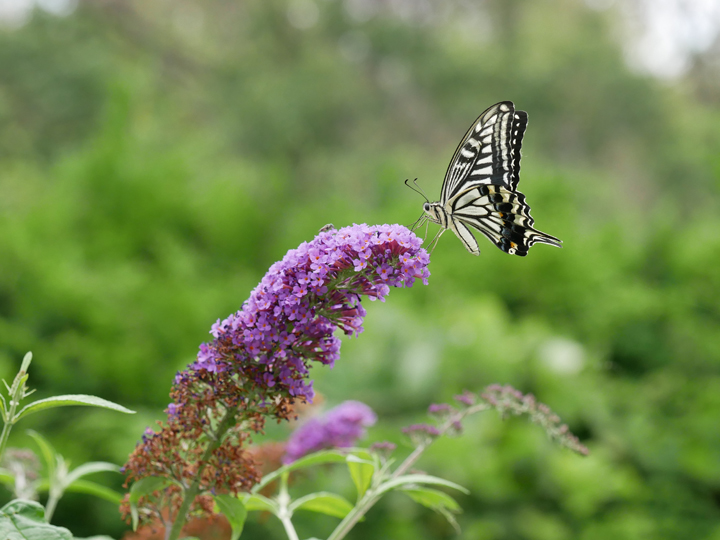 蜜が多いので蝶を引き寄せるブッドレアが満開です。和名ではフサフジウツギと呼ばれますがダビディー系の園芸品種を指すようです。