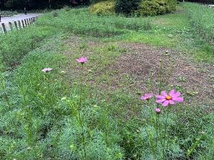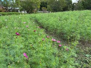 コスモスは「集いの丘」と「彩りの広場」「南花畑」で咲き始めました。