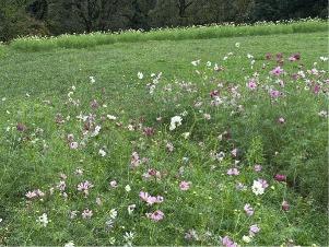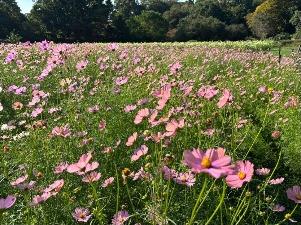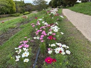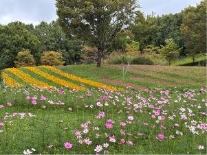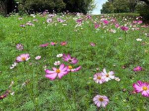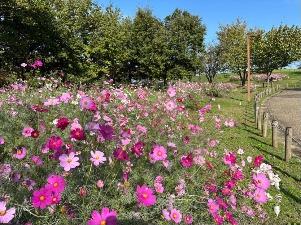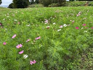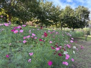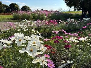コスモスは、「集いの丘」と「彩りの広場」「南花畑」で咲いています。
