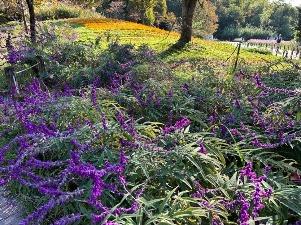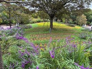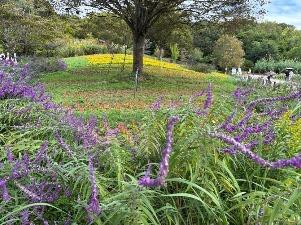 県民協同花壇では、ニューレンベルギア・カピラリスやフジバカマなどの秋の植物が見頃です。