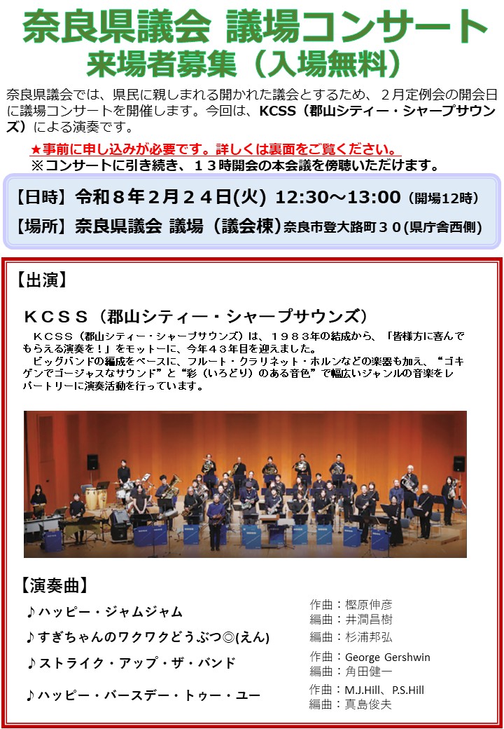 奈良県議会 議場コンサートを2月24日(火曜日)に開催します。