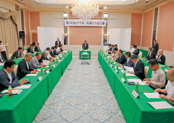 本県議会からは、田中議長をはじめ7人の議員が参加し、紀伊半島地域における獣害被害や、紀伊半島アンカールートの整備促進について、活発な意見交換を行い、今後とも情報共有するなど三県議会が連携して、国に要望していくことで合意しました。