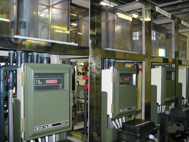 各浄水過程の水がサンプリングポンプによってここに集まってきます。