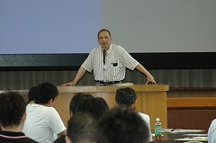 昼過ぎには上北山村に到着しました。講演会場である上北山中学校では、最初に佐久総合病院の色平哲郎先生から診療所勤務経験に基づく地域医療への想いや、医師になる前の学生時代に培っておくべきことについてお話いただきました。続いて、県立五條病院の中村達先生から「奈良県へき地医療研修プログラム」について説明いただきました。その後、奈良県立医科大学の藤本眞一先生の司会進行のもと、札幌医科大学の夏目寿彦先生に基調講演をしていただき、へき地医療における問題点の解決策を探るワークショップを行いました。