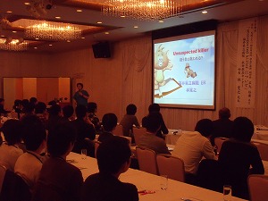 第2部では、石丸裕康先生(天理よろづ相談所病院救急診療部副部長)を座長として、林寛之先生(福井県立病院救命救急センター科長)による特別講演「unsuspected killerについて」が行われました。会場の研修医は、救急室での検査や診断等の実践的な林先生のお話を熱心に聞いていました。講演終了後には交流会も行われました。