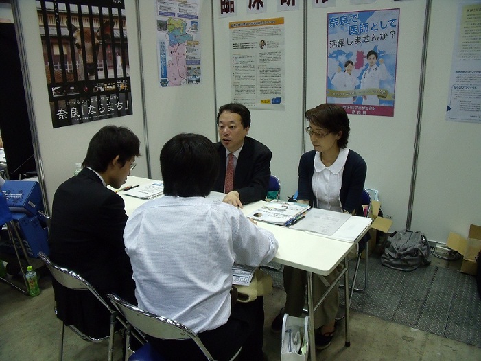 東京では連絡ブースを設け、奈良県立医科大学附属病院の赤井先生から県内臨床研修病院の紹介・案内を行いました。