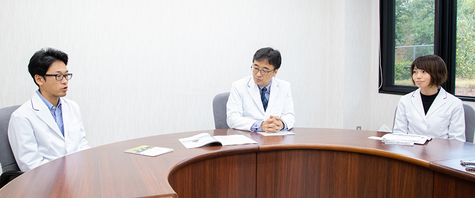 今は3人の医師でチームを組んでいますが、患者さんへの最初の挨拶の際には、必ず3人で行って「みんなで診る」ことを伝えています。そうすると患者さんも安心して、チームの誰が行ってもにこやかに対応してくださるんですね。チーム診療のメリットは、お互いにカバーし合えることだと思います。私が15時に帰った後、患者さんに何か問題が生じても、チームの先生方が対応してくれるので安心です。さらに患者さんと主治医という1対1の関係性になると、時には患者さんのためにと思ったことが、患者さん側からすれば重要性や必要性の高くないこともあり、つい陰性感情が生じそうになることもあります。そんな時はチーム診療の他の医師と再度議論することで、物事を改めて俯瞰することができるのでとても助かっています。