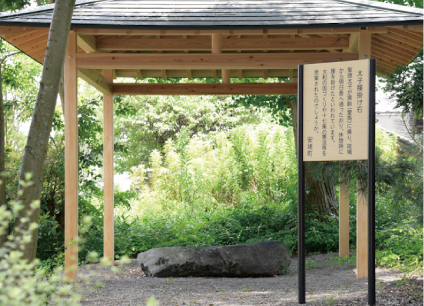 安堵町域に残る太子道沿いを歩いてみると、聖徳太子にゆかりのある伝承地が以外と多くあることに気がつきます。聖徳太子が腰掛けたという飽波神社の腰掛石に座り、ほっと安堵する時間を過ごしてみるのもいいかもしれません。