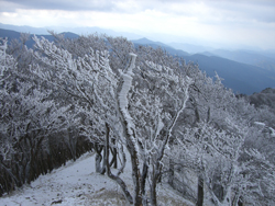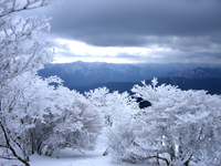 関西で霧氷が楽しめる山はいくつかあるが、樹木の枝から風の...