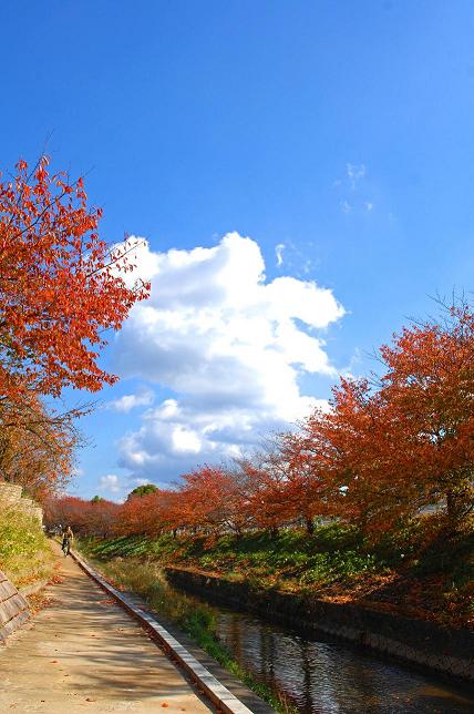 ケヤキ並木の緑が美しい遊歩道である「かつらぎの道」を北に進んで…