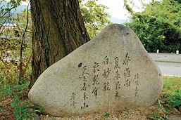 「春過ぎて 夏来るらし 白栲の 衣乾したり 天の香久山」という万葉仮名で書かれた歌碑が、天香久山が見える藤原京跡の醍醐池東南隅に建つ。儀式用の衣を乾かしている光景を見て、春の神事の終了と夏の到来の実感を詠んだもの。飛鳥から藤原京へ都を移した持統天皇が、藤原の都で詠んだといわれているが、飛鳥で詠んだという説もある。