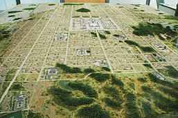 持統天皇が夫の天武天皇の意志を継ぎ、造営した日本最初の本格的な都。694年12月に飛鳥浄御原宮から遷都。その後710年に平城京に移るまで、持統・文武・元明三代天皇、16年間の都となる。宮を中心に新しい都の鎮(しずめ)の役割を果たした大和三山(畝傍山・天香久山・耳成山)がすっぽり入る約5キロメートル四方の広大な規模。