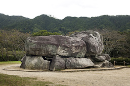 日本最大級の石室をもつ飛鳥を代表する古墳。七世紀はじめに造られ、一辺が55メートルの方墳だが、古くから墳丘の盛り土がはがされ、巨大な横穴式の石室がむき出しになっている。露出した石は約30個、総重量は2300トンと推定される。被葬者は不明だが、飛鳥時代初めにこの地で政権を握っていた蘇我馬子の桃源墓説が有力。3月下旬から4月上旬、桜の花に彩られた石舞台の風景はことのほか美しい。