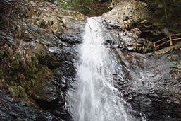 『日本書紀』『古事記』に収められた雄略天皇のトンボの故事にちなんだ滝の名である。高さ50メートルの水量豊富な滝で、数段になって滝壺に落ちながら飛沫を上げて流れ下る。滝見の展望所から螺旋階段を下りると、滝壺に架かる桟橋があり、そこから滝を見上げられる。展望所から少し進んだ不動堂辺りが滝の中心部で、遊歩道を通ると滝を見下ろせる。晴れた日は滝の飛沫が虹を描き出すため「虹光(にじっこう)」とも呼ばれる。