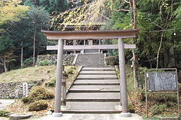 奥千本にひっそりと佇む古社で、吉野山の地主神、金山毘古命(かねやまひこのみこと)を祀っている。黄金の守護神として信仰を集め、中世以降は修験道の修行場となり、「栄華物語」には、藤原道長も祈願したことが記されている。境内の左の坂を少し下ると、源頼朝に追われた義経が弁慶らと隠れたという、小さなお堂「義経隠れ塔」がある。