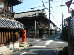 八木札の辻は、東西に通る古道「横大路」と藤原京と平城京の朱雀大路を結ぶ南北の主要な古道「下ツ道」とが交差する所です。江戸時代に高札の架かる場所となり「札の辻」と呼ばれ、商業の中心となりました。今も八木札の辻周辺では、江戸時代の歴史的町並みと灯篭などの当時の面影が残されています。