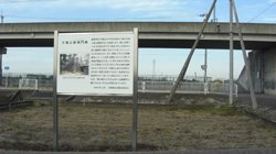 白い石の台座の上に高さ90センチメートルの石で造られた「下ツ道 跡」の碑です。平成20年7月にかしはら万葉ホール(小房町)の南側にある公園内に設置されました。