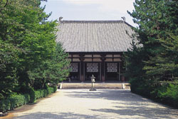 聖武天皇の招きに応じて、苦難の末、日本に着いた唐の高僧・鑑真和上により天平宝宇3年(759)に創建されました。金堂には「天平の甍」と称される鴟尾が載り、宝蔵などが並ぶ境内は創建当時の姿をよくとどめています。その配置の構成美は、天平時代の気宇も大きさを今に伝えています。