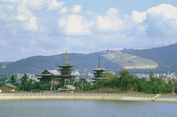 奈良の都・平城京の中枢部。国家の政治や儀式をする大極殿や朝堂院、天皇が日常生活を送る内裏、饗宴を催す庭園などいろいろな役所がありました。朱雀門・第一次大極殿は復元され、平成22年には平城遷都1300年祭の会場として賑わいました。平城宮跡資料館には宮跡内で出土した土器、木簡などを展示、遺構展示館には、発掘したままの状態で遺構を保存しています。