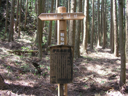 中世には何箇所かの関所があったそうです。実際の場所は定かではありませんが、街道沿いに諸木野関所跡の碑が建てられています。この付近は植林地帯ですが、静かな街道の雰囲気を味わえます。明るく開けた場所に出ますと諸木野宿。約9軒の旅籠があったそうです。春先、水田に美しい桜が映る様は二人静の趣です。また、北畠氏の家臣で弓の名人と言われた諸木野弥三郎の墓があります。