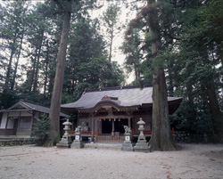 本殿は神明造り、拝殿は入母屋造りで伊勢本街道沿いに鎮座します。天照大神をお祀りする場所を探して旅をしていた倭姫命(やまとひめのみこと)が候補地のしるしとして杖(御杖)を置いたという伝承の地です。村名の「御杖」はこの伝承に由来します。
