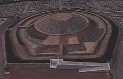 馬見丘陵の中央部に位置する北向きの大型前方後円墳で、墳丘全長220メートル、後円部径約130メートル、高さ19メートル、前方部幅112メートル、高さ約16.5メートルの規模があり、左右のくびれ部に造り出しを設けています。前方部の西側には出島状遺構を確認し水鳥・蓋・盾・家・囲・柵形埴輪が出土しています。埋葬施設は後円部中央に竪穴式石室が2基、前方部にも石室が造られていました。出土遺物は勾玉、管玉、棗玉等の玉類と鍬形石、車輪石、石釧等の石製品、滑石製の刀子、斧が知られています。馬見古墳群中最大の規模を誇り、古墳時代中期初頭の葛城の王墓と考えられています。(特別史跡)