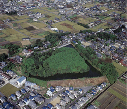 奈良盆地の多くの河川が合流する低地に5世紀後半から6世紀初頭にかけて築かれた古墳群で、前方後円墳3基・方墳1基・円墳4基の計8基が残っています。古墳群で最も大きな大塚山は墳丘の全長が197メートルで、墳丘の周囲に濠と堤が巡っています。近年の発掘調査ではさらに外側に濠が巡っていることが分かってきました。最後に造られた城山古墳は全長109メートルの前方後円墳ですが、中世には河合城として利用され、名称の由来となっています。(国指定史跡)
