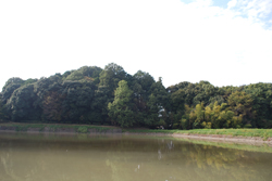 新沢千塚の北東部に、船付山からのびる屋根の先端部を利用して築かれた一基の大型の前方後円墳です。宣化天皇陵に治定されています。ミサンザイは御陵(みささぎ)の訛ったもので、古くから御陵墓の伝承があったことになります。古墳は尾根を利用して築かれているため、北北東に前方部を向けています。そのため北東から北西にかけて築堤を行って、幅の広い深い濠となっています。しかし上手の南側は濠幅も狭く、外堤も低いので、墳丘が二段に構成され、前方部と後円部の境のくびれ部分に方形の造り出しをもっています。また葺石や埴輪をめぐらしていることが外部からでも観察できます。