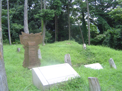 平成13年度に石室の所在と現状を確認するための調査を実施したところ、大正年間になされた報告の通りの巨大な横穴式石室と家形石棺が存在することが判明しました。本墳は石室・石棺の型式から6世紀後葉の築造とみられます。石室内には、かつて水がたまっていたことを示す成水層がまだ厚く堆積しているために、正確な規模は不詳ですが、石室・石棺ともに6世紀後葉にあっては最大もしくは最大級と呼ぶに相応しいと言えます。