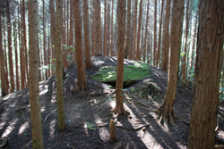 室町時代から戦国時代を通じてこの地方で隆盛を誇るものの、悲運の歴史に翻弄され滅んでしまった豪族・十市一族。遠忠の時代にもっとも勢力を伸ばし、龍王山城の完成もこの時期だったと思われます。しかし、隆盛は長く続かず、次の遠勝の時代には大和に進出した松永弾正久秀に攻められ、ついに龍王山城は松永方の手に落ちてしまいます。実際には激しい戦闘もなく開城したようですが、地元には落城にまつわる幾多の悲話が、十市氏や多くの兵士達の怨念として今に伝えられています。今にも雨が降りそうな夏の夜、龍王山に向かい「ホイホイ」と叫ぶと、城跡からジャンジャンと轟音を立てて火の玉が降り注ぎ、叫んだ人を焼き殺してしまうという伝説があります。そして、そのジャンジャン火に襲われた武士が誤って首を斬ったといわれる、お地蔵さまが残っています。