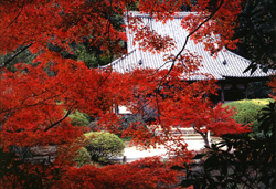 天長元年(824)、弘法大師が開いたとされる名刹。わが国最古の玉眼仏である阿弥陀三尊像(重要文化財)が本尊。かつて龍王山城への登山口として武士や僧侶などが滞在していました。今では四季おりおりに美しさを見せる花と文化財の古刹です。そして、ここにも十市遠忠にまつわる話が伝わります。十市遠忠と松永久秀が長岳寺で大将同士の組み討ちとなり、血みどろの戦いの末、本堂の床板には血のわらじ跡が残されました。お寺では、記念するため床板を本堂の天井のひさしに入れ替えたといいます。それからは幽霊がさかさまになって歩くといわれています。長岳寺に残る遠忠の血の足形とさかさ幽霊の話です。