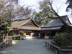 吉野駅…ロープウェイ吉野山駅下車徒歩約15分 蔵王堂から徒歩約5分 もとは吉水院という、金峯山寺の格式高い僧坊でしたが、明治のはじめ、後醍醐天皇、楠木正成、宗伸法印をまつる神社に改められました。吉野へ潜行された後醍醐天皇を、吉野大衆の中でも特に力をもっていた住職、宗信法印がお迎えし、吉水院は一時行宮となります。源義経が静御前や供のものと逃げのびてきたのも、太閤秀吉の花見の本陣となったのもここです。当神社には南朝の古文書や武具、秀吉の花見に使われた楽器など、100点を超える宝物が残っています。また、初期書院造りの傑作といわれる書院建築で、義経潜居の間、後醍醐天皇玉座の間、太閤秀吉花見の間があります。うち、義経の間が室町時代様式で、他は桃山時代以降のもの。