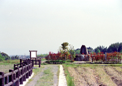 東西、南北、高さ各1.8メートルの規模で、矢田部聖賢の墳墓と言われており、伝説では、櫛玉彦命(くしたまひこのみこと)が鎮座の地を定めるために放った3番目の矢が落ちたところとされています。