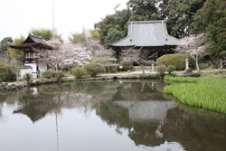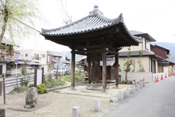 天長元年(824年)、淳名天皇の勅願により空海(弘法大師)が大和神社の神宮寺として創建したと伝える名刹です。真言宗高野派に属し、俗に釜口山のお大師さんと呼び親しまれています。中世の盛時には広大な寺領を有し、多くの堂坊が建ち並び、真言秘法の大道場として知られていました。廃仏毀釈でさびれたものの、わが国最古の玉眼仏である本尊阿弥陀三尊像(重文)はじめ、鐘楼門(重文)など、重要な文化財を多く伝えています。
