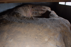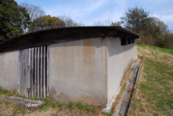 1931(昭和6)年に果樹園拡張のための開墾中に発見されました。瓦塚2号墳の後円部の西側斜面を利用した登り窯で、出土した瓦から、飛鳥時代後半頃の瓦窯と考えられています。三井瓦窯跡は、法起寺の北西約100メートルに位置し、瓦窯がある南北にのびる尾根上には、前方後円墳2基(1号・2号墳)と円墳1基(3号墳)からなる瓦塚古墳群があります。