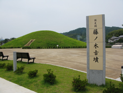 藤ノ木古墳は、法隆寺の西約400メートルに位置し、昭和60(1985)年より発掘調査が行われ、石室内からは朱塗りの家形石棺とともに素晴らしい金銅製馬具類・金銅製冠・大刀などの副葬品が出土しました。また、石棺内は盗掘を受けず、埋葬当時のままでしたが、被葬者は現在も謎に包まれており、古代のロマン誘うところです。平成20(2008)年、藤ノ木古墳の整備が完了しました。斑鳩文化財センターは、斑鳩町の文化財調査・研究及び情報発信の拠点として藤ノ木古墳から出土した代表的な副葬品のレプリカの展示や映像による解説などにより、藤ノ木古墳について解りやすく案内しています。