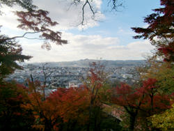 「ちはやぶる 神代も聞かず竜田川 唐紅に水くくるとは(在原業平)」などのように、古くから紅葉の名所として知られている竜田川は、生駒山系に水源をもち、生駒山地と矢田丘陵に挟まれた生駒谷を流れて、斑鳩で大和川と合流しています。県立公園は、竜田川の河川公園として約2キロメートルにわたり整備されており、春は三室山の桜、秋は川畔の紅葉と四季折々楽しんでいただけます。公園内にある堂山は、片桐且元の竜田城(陣屋)跡です。竜田城跡から信貴山城跡を望む