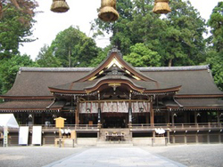 御祭神大物主神(おおものぬしのかみ)の御魂が三輪山に留まり、山全体を御祭神とする日本最古の神社といわれています。大物主神は国造りの神様として、また、医療、酒造、方除など生活全般の守護神として大和の国一の宮、三輪明神として親しまれています。本殿は設けず拝殿の奥にある三ツ鳥居を通し、三輪山を拝するという原始の神祀りの様が伝えられています。