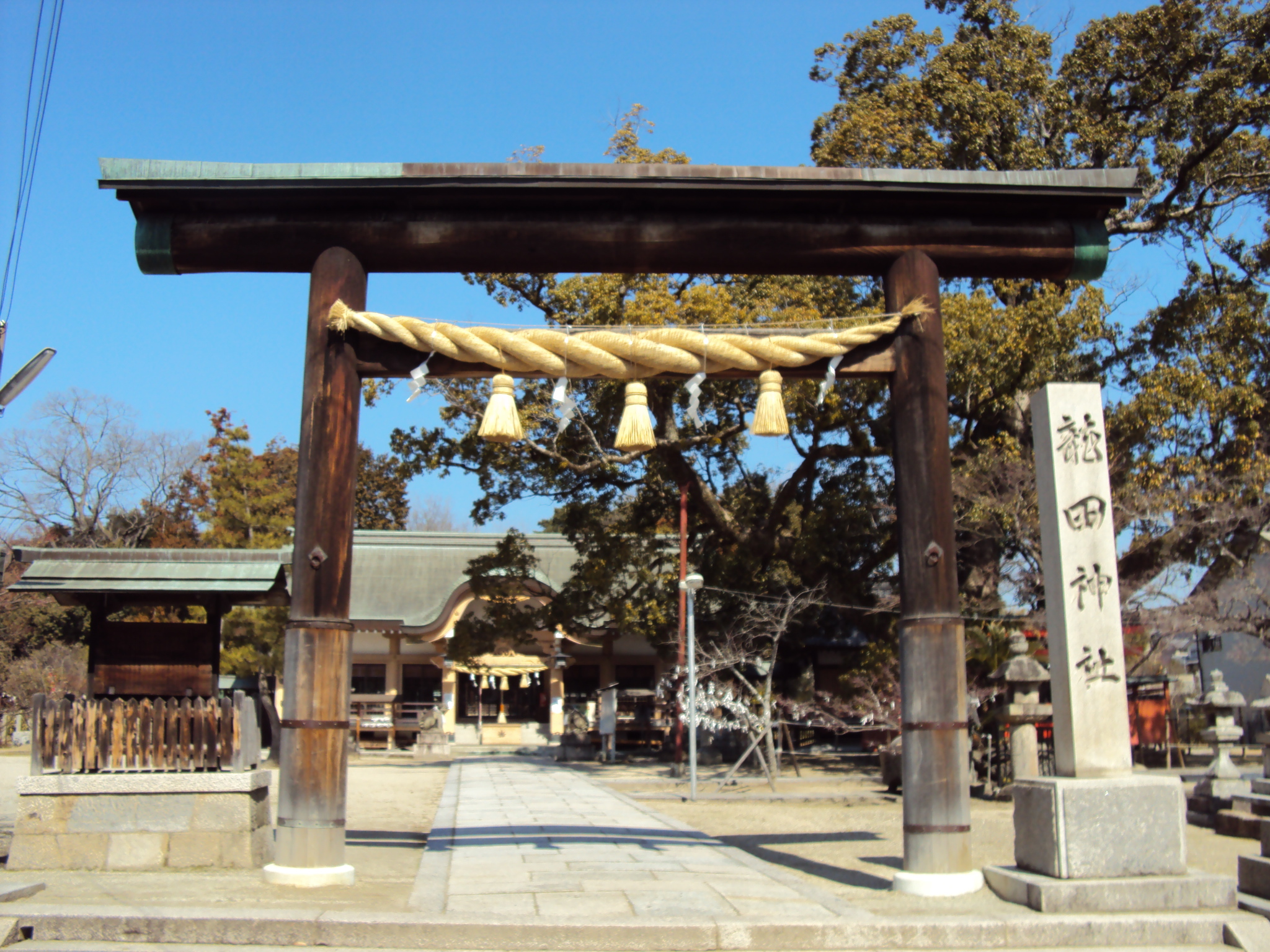 歴代の朝廷からも深く信仰された由緒ある神社で、天御柱命(志那都比古神)と国御柱命(志那都比売神)をお祀りしています。祭神は、別名を龍田神・龍田風神ともいい、社伝によると、崇神天皇の御代に凶作が続いたとき、夢でこの風神のお告げをうけて創建されたということです。延喜の制では名神大社に列し、古くから五穀豊穣・航海安全に霊験ありとして崇敬を集めています。旧社格は最高の官幣大社。天武4年(675年)から営まれているという風鎮祭が毎年7月第1日曜日に行われ、風鎮太鼓や風神花火を奉納します。