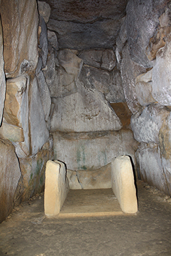 竜田川西岸の丘陵上に築造された前方後円墳。全長は60.5mで平群谷最大の古墳。玄室は巨石を用いて作られ、石室の高さは奈良県内で石舞台古墳に次いで高い。玄室、羨道に組合家形石棺を安置し、玄室棺の外側には斜線刻文が線刻されていることで有名。6世紀後半に築造。国史跡指定。石室内の組合家形石棺を保護するため、石室を玄門部分で施錠しており、鍵は教育委員会(中央公民館)で管理、貸し出ししている。[※年末年始、祝祭日は貸し出し不可]