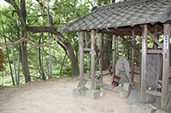 信貴畑の辻に屋形が建てられ、その中に十一面観音の石仏が樽の上に乗っている。樽は酒樽ではなく、菜種油の樽。永代灯明を願った信者の寄進と思われる。石仏の高さは樽を含め1.42m。明和5年(1768年)の銘文がある。