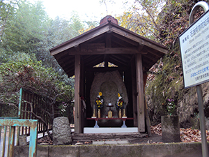 「難波門を 漕ぎ出て見れば 神さぶる 生駒高嶺に 雲そたなびく」(巻20-4380)と詠まれた防人歌の歌碑。この場所には役行者造、弘法大師像、地蔵菩薩像、六字名号碑などが置かれている。