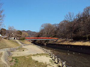 大和川は、大和平野の河川が王寺で一つになり、王寺は古代から舟運で、近代からは鉄道の町で栄えました。大和川を挟んで、在原業平・能因法師が詠んだ百人一首2首の場所、春は桜・秋は紅葉の名所県立竜田公園、三室山を通り、大和川に架かる沈下橋を渡って、聖徳太子ゆかりの西安寺跡・舟戸神社を訪ね、聖徳太子と達磨大師で有名な飢人伝説の達磨寺で往時をしのびます。達磨寺では聖徳太子の愛犬「雪丸像」に会い、また聖徳太子唯一の万葉歌「家にあらば 妹(いも)が手纏(てま)かむ草枕 客(たび)に臥(こ)やせる この旅人あわれ」の古代大和の空気に触れていただくことも。王寺町のシンボル「和の鐘」を見て、王寺駅に戻り、記紀万葉のロマンを満喫してください。