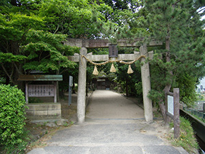 大和川と葛下川にはさまれた地帯にあるこの神社は、衝立船戸神とも呼ばれ、伊弉諾(いざなぎ)神が投げ捨てた杖から化生した神と伝わる。本殿は春日造りの一間社で、拝殿には明治時代の絵馬が数多く掲げられている。またこの神社は、古く聖徳太子建立の四十六ヵ寺のひとつである「西安寺(さいあんじ)」の旧跡として学問的にも注目され、付近から礎石、瓦など多くの遺跡も発見されている。