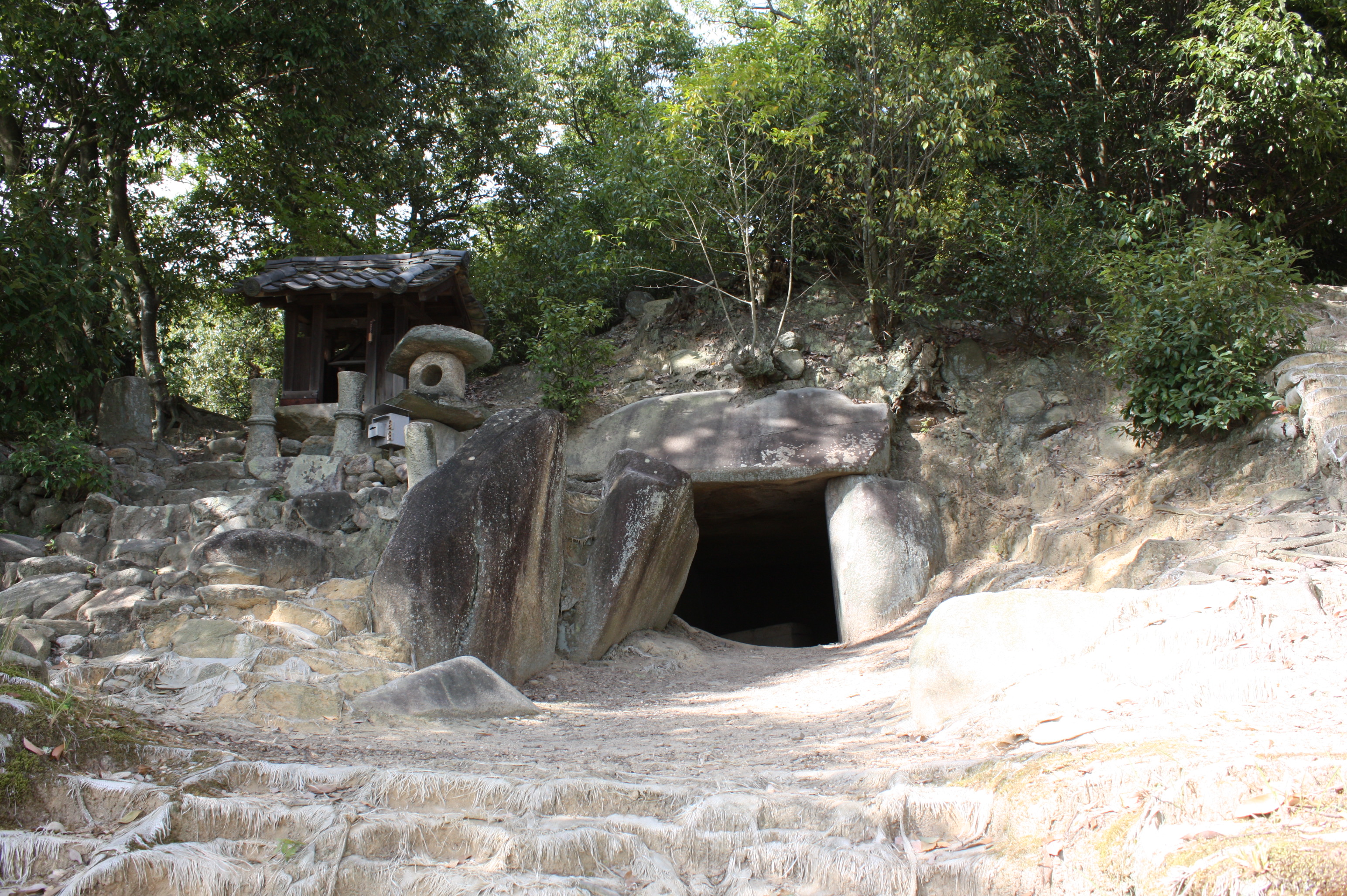 7世紀中葉に作られたとされる一辺約36m、高さ約7.5mの方墳。三段に築成され、墳丘の全面に貼石が施されている。石室は切石を用いた優美なもので、天井、奥壁、側壁のすべてが一枚石で構築されている。石室内に兵庫県竜山石製の刳抜式家形石棺の身部が残っており、外面の上下に帯状の突帯(とったい)が掘りだされている。石室への入室も可能である。県史跡指定。