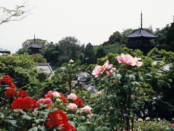 中将姫が當麻曼荼羅を織るための蓮糸を染めたとされる染の井(そめのい)という井戸が境内に存在しています。また牡丹の名所としても知られ、春牡丹(4月下旬~5月初旬)や寒牡丹の開花期(11月下旬~1月下旬)には、多くの花見客で賑わいを見せます。趣のあるこの寺へ足を運んだ文人も多く、与謝野鉄幹・晶子夫妻の文学碑が庭園内に建てられています。