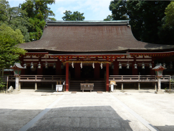 古くから神聖視されていた御蓋山に、平城遷都にともない都の守護の為、茨城の鹿島神宮から武甕槌命(たけみかづちのみこと)を迎えたのが始まりといわれています。その後、千葉の香取神宮から経津主命(ふつぬしのみこと)、大阪の枚岡神社から天児屋根命(あめのこやねのみこと)、比売神(ひめがみ)を迎え神護景雲2年(768)にこれら四座の神々を現在の地に祀り社殿が創建されました。平安時代には現在のような規模の社殿が整い、藤原氏をはじめ貴族などの「春日もうで」がさかんに行われました。鎌倉時代からは庶民の信仰も盛んになり、人々から石燈籠や釣燈籠が寄進されました。現在、毎年2月の節分の日と8月14・15日に行われる万燈籠では、すべての燈籠に火が灯され、幻想的な美しさに多くの参拝者が訪れます。また、4月中旬~5月上旬には、春日大社萬葉植物園(神苑)など境内で早咲き遅咲きの藤の花が華麗に咲き、なかでも直会殿前の「砂ずりの藤」(見頃は5月上旬)は見事です。