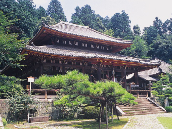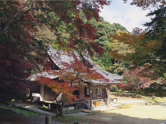 霊亀元年(715)、高円山の西麓にあった志貴皇子(天智天皇の第7皇子)の山荘跡を寺としたのが始まりと伝えられ、宝蔵には、珍しい閻魔王坐像があり迫力のある表情をご覧いただけます。境内からは、奈良市街を見渡すことができ、すばらしい眺望を楽しむことができます。また、春は奈良三名椿のひとつである五色椿(県の天然記念物)が美しい花を咲かせ、秋には萩の花が境内を彩ります。