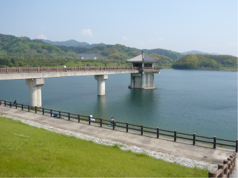 天理市には2つのダムがあり、一つは、市内中東部、大和青垣の中腹で梅や桜が咲き誇る天理ダム。そしてもう一つが、市内北部、東海自然歩道沿いで広がる水面と山系が、訪れる人をゆるやかに迎えてくれるこの白川ダムです。また、白川ダムから少し迂回すれば名阪国道の上を通る道路があり、歩道もあるので、橋の上から見る東の山並みまた西の平野部の一味違う景色が楽しめます。