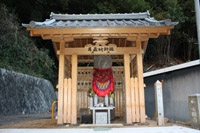 屋形内部左側に揺るぎ地蔵、右側に十三仏板碑、後ろ側に五輪塔が祀られている。一括で町指定文化財。・揺るぎ地蔵頭上に笠石を載せた高さ2mの笠地蔵石仏である。「弘安二二年(1281)」の銘があり、2度目の元寇に際し国難排除を願って建立されたとみられる。その後、当初の目的を離れて、お願いすれば病気がたちどころに揺らぐ(治る)との身近な信仰が生まれ、今日の呼び名となっている。・十三仏板碑「天文二十年(1551)」の銘があり、在銘の十三仏の中では、平群谷で2番目に古いものである。頭上に天蓋を表し花崗岩の舟形の板碑に初七日から三十三回忌までの仏事に配された仏を彫ったものである。・五輪塔鎌倉末期~南北朝頃の作とみられ、ほぼ完全な形を残している。